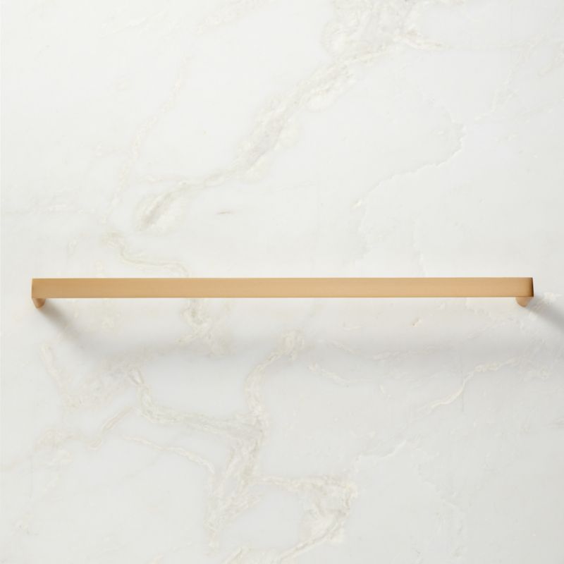Appliance pull by Barcelona-based Mermelada Estudio sports sleek lines and subtle curved design details crafted of solid brass. Pair with the Damon knobs and handles for an upscale look seen in custom-designed kitchens. CB2 exclusive.