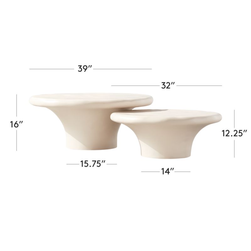 Pompeo 32" Round Ivory Cast Resin Indoor/Outdoor Coffee Table SmallPompeo 39" Round Ivory Cast Resin Indoor/Outdoor Coffee Table Large2-Piece Pompeo Round Ivory Cast Resin Nesting Indoor/Outdoor Coffee Table Set
