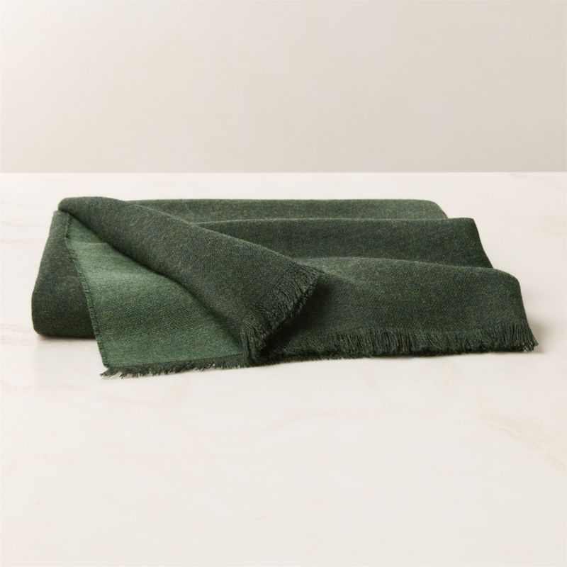 Woven from pure premium alpaca and made in Peru, throw blanket is the definition of refined softness. Heralded as the finest and silkiest part of an adult alpaca's coat, our premium alpaca comes from the Peruvian Andes. Its ultra-fine weave delivers warmth without weight. Designed for versatility, the dark green side reverses to a tonal green, offering a subtle contrast that complements any space. CB2 exclusive.