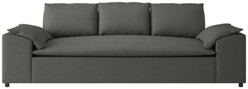 Designed by VUUE, sleeper sofa offers elevated comfort in a textural performance linen. The deep, loungy profile is contrasted by two angled arms that, when paired with the pillow-like cushions, make a perfect spot for an impromptu nap. Featuring a queen, memory foam mattress, the sofa effortlessly stretches out to a queen bed for overnight guests. CB2 exclusive.