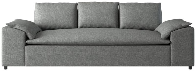Designed by VUUE, sleeper sofa offers elevated comfort in a textural performance linen. The deep, loungy profile is contrasted by two angled arms that, when paired with the pillow-like cushions, make a perfect spot for an impromptu nap. Featuring a queen, memory foam mattress, the sofa effortlessly stretches out to a queen bed for overnight guests. CB2 exclusive.