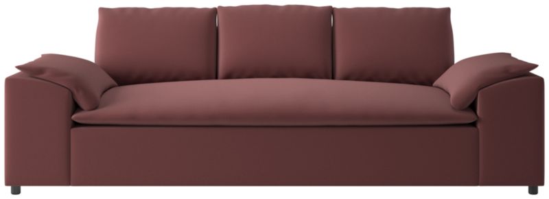 Designed by VUUE, sleeper sofa offers elevated comfort in a textural performance linen. The deep, loungy profile is contrasted by two angled arms that, when paired with the pillow-like cushions, make a perfect spot for an impromptu nap. Featuring a queen, memory foam mattress, the sofa effortlessly stretches out to a queen bed for overnight guests. CB2 exclusive.