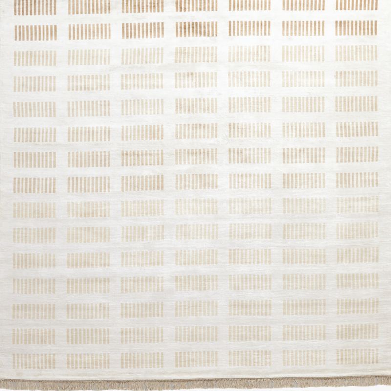 Studio ANANSI, geometric patterned rug is loomed by hand from rows of soft viscose for a velvety feel with rich tonal highs and lows. A soft neutral ombre pattern is printed by hand over the ivory ground, offering subtle contrast to complete the modern look. CB2 exclusive.
