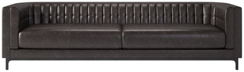 Subtle curves and a channel-tufted back define the architecture of this long, sleek sofa by Mermelada Estudio. Classic details such as blind tufting and welting complement the modern silhouette while highlighting the high level of craftsmanship throughout. Sofa is upholstered in rich leather by Moore & Giles, a highly regarded source of top-tier leather since 1933. Sourced from reclaimed cowhides in Bassano del Grapa, Italy, the full-grain, pure aniline leather will age and become even softer over time. The frame, hand-assembled of kiln-dried hardwood certified sustainable by the Forest Stewardship Council® (FSC), is topped by thick cushions that provide deep comfort and support. Defined by its inherent warmth and buttery feel, each sofa tells a story of natural beauty—no two hides are exactly alike. CB2 exclusive.