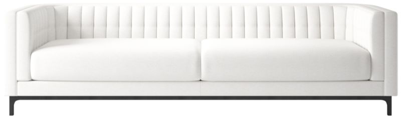 Subtle curves and a channel-tufted back define the architecture of this long, sleek sofa by Mermelada Estudio. Classic details such as blind tufting and welting complement the modern silhouette while highlighting the high level of craftsmanship throughout. Sofa is designed to meet the needs of everyday living. The frame, hand-assembled of kiln-dried hardwood certified sustainable by the Forest Stewardship Council ® (FSC), is topped by thick cushions that provide deep comfort and plush support. CB2 exclusive.
