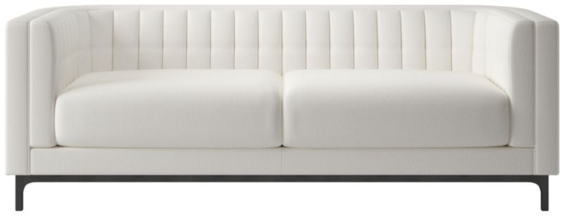 Subtle curves and a channel-tufted back define the architecture of this sleek sofa by Mermelada Estudio. Classic details such as blind tufting and welting complement the modern silhouette while highlighting the high level of craftsmanship throughout. Sofa is upholstered designed to meet the needs of everyday living. The frame, hand-assembled of kiln-dried hardwood certified sustainable by the Forest Stewardship Council® (FSC), is topped by thick cushions that provide deep comfort and plush support. CB2 exclusive.