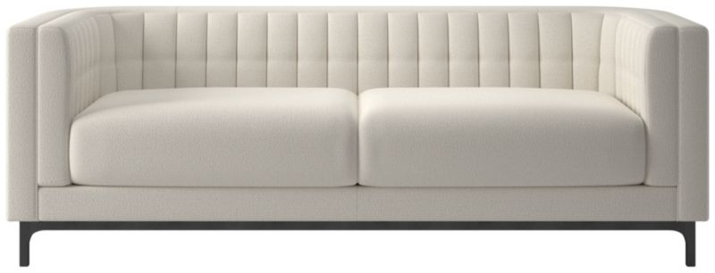 Subtle curves and a channel-tufted back define the architecture of this sleek sofa by Mermelada Estudio. Classic details such as blind tufting and welting complement the modern silhouette while highlighting the high level of craftsmanship throughout. Sofa is upholstered designed to meet the needs of everyday living. The frame, hand-assembled of kiln-dried hardwood certified sustainable by the Forest Stewardship Council® (FSC), is topped by thick cushions that provide deep comfort and plush support. CB2 exclusive.