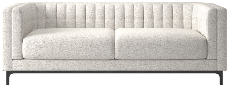 Subtle curves and a channel-tufted back define the architecture of this sleek sofa by Mermelada Estudio. Classic details such as blind tufting and welting complement the modern silhouette while highlighting the high level of craftsmanship throughout. Sofa is upholstered designed to meet the needs of everyday living. The frame, hand-assembled of kiln-dried hardwood certified sustainable by the Forest Stewardship Council® (FSC), is topped by thick cushions that provide deep comfort and plush support. CB2 exclusive.