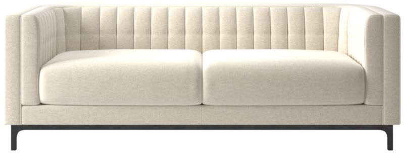 Subtle curves and a channel-tufted back define the architecture of this sleek sofa by Mermelada Estudio. Classic details such as blind tufting and welting complement the modern silhouette while highlighting the high level of craftsmanship throughout. Sofa is upholstered designed to meet the needs of everyday living. The frame, hand-assembled of kiln-dried hardwood certified sustainable by the Forest Stewardship Council® (FSC), is topped by thick cushions that provide deep comfort and plush support. CB2 exclusive.