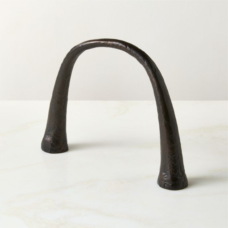 Cast metal sculpture by award-winning French design duo dach&zephir uses the cultural histories of France and Guadeloupe as a raw material for their design. The simple geometry is balanced by the deep brown metallic finish, surfacing tonal highs and lows across the arch for a "found" look. CB2 exclusive.