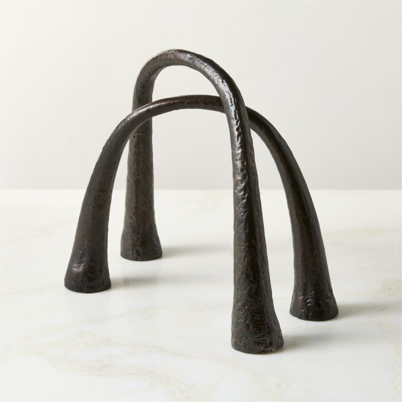 Cast metal sculpture by award-winning French design duo dach&zephir uses the cultural histories of France and Guadeloupe as a raw material for their design. The simple geometry is balanced by the deep brown metallic finish, surfacing tonal highs and lows across the arch for a "found" look. CB2 exclusive.