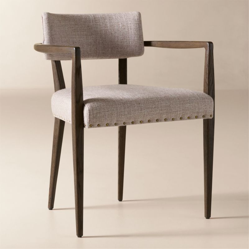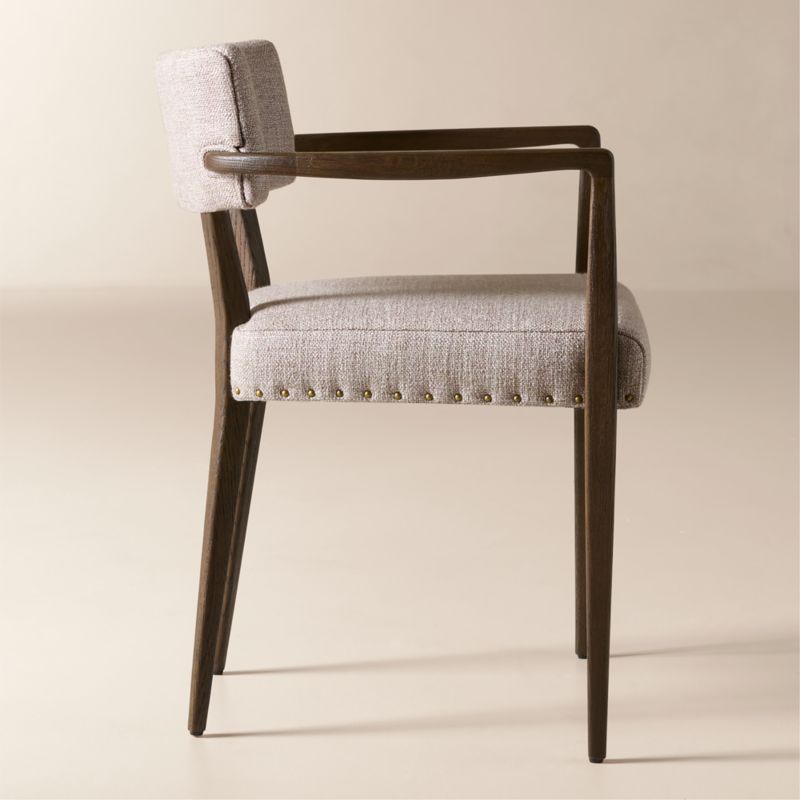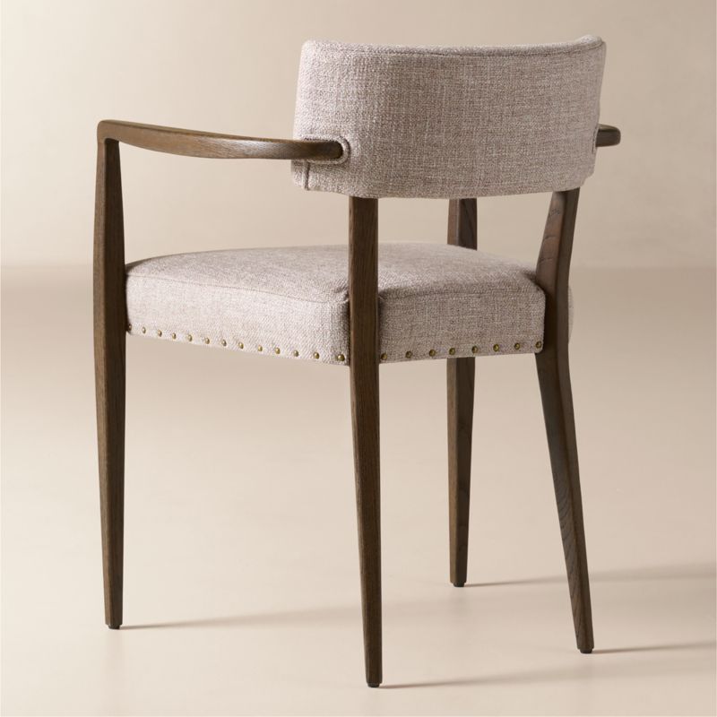 Upholstered in a muted mauve performance fabric, tailored counter stool by NYC-based designer Brett Beldock invites you to linger. FSC ®-certified solid oak shapes the stool's clean lines and gently curved back, complemented by an Italian linen-cotton blend performance fabric. Thoughtful details include warm aged bronze nailheads that outline the seat cushion in a nod to vintage upholstery. CB2 exclusive.