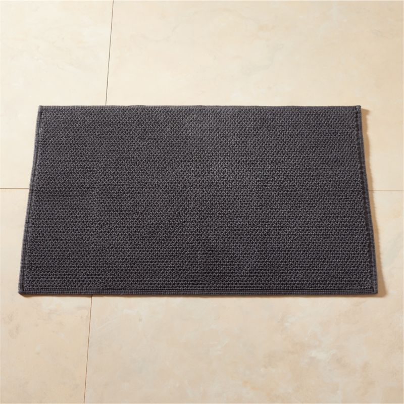 A simple upgrade to the traditional bath mat with unique texture that showcases a jacquard loom technique. Woven of certified organic cotton, charcoal grey bath mat is durable and machine-washable, making it perfect for everyday use. Also available in a bath runner. Pair with the Arlow bath towels for a coordinated look. CB2 exclusive.