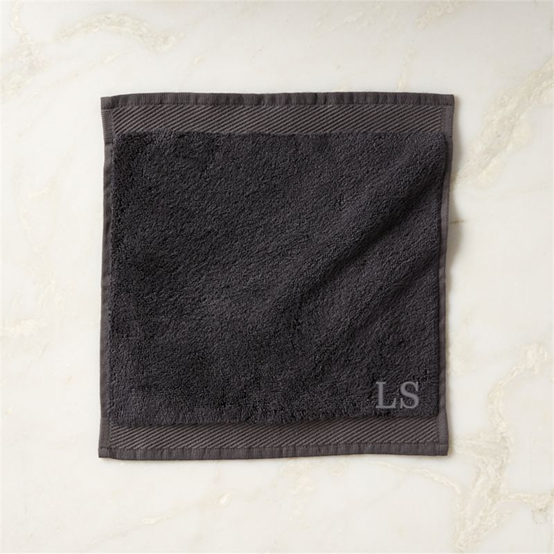 Impressively soft, extremely absorbent washcloth is as durable as it is beautiful. Plush charcoal grey yarns are spun from a blend of certified organic Turkish cotton and TENCEL ™ Modal for a super-soft hand. Pair with the En Pointe bath mats for a coordinated look. CB2 exclusive.