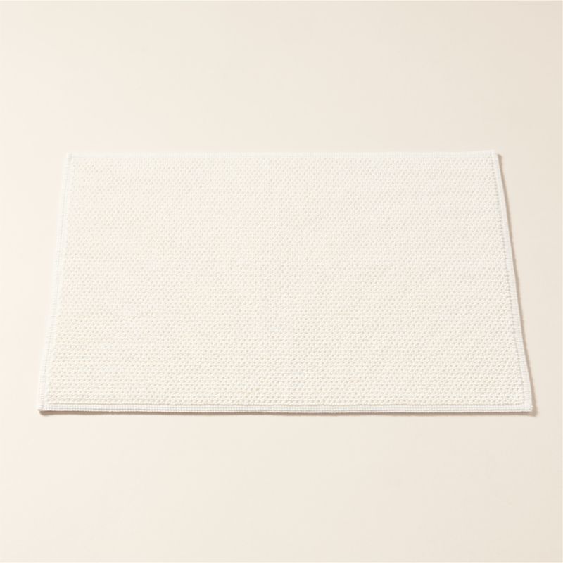 A simple upgrade to the traditional bath mat with unique texture that showcases a jacquard loom technique. Woven of organic cotton, warm white bath mat is durable and machine-washable, making it perfect for everyday use. Also available in a bath runner and towels. CB2 exclusive.