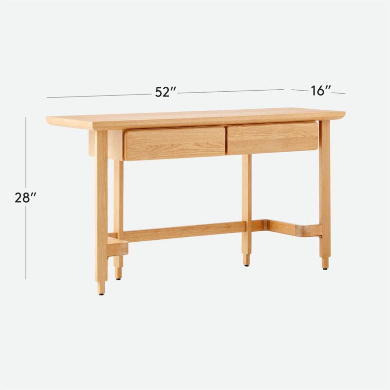 Crafted with ash and oak certified sustainable by the Forest Stewardship Council, wood console table by California design duo Lawson-Fenning is made with exacting attention to detail. Thoughtful construction with dovetail joinery attests to the designers' respect for woodworking, while the two drawers' wood glides are a traditional feature borrowed from master craftsmanship. Half bullnose edge detailing and flowing angles add up to a casually elegant piece to cherish for years to come. CB2 exclusive.