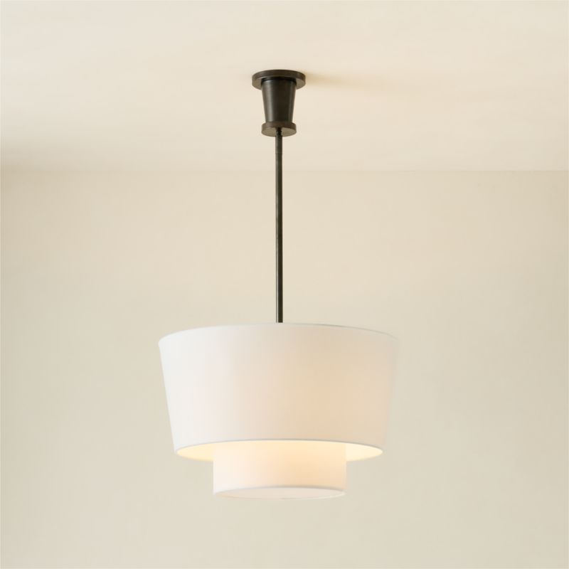 Elegant blackened brass flush mount by Los Angeles-based AD100 designer Ross Cassidy is complemented by a diffused linen shade for a warm, inviting glow. The brass is unlacquered, offering a living finish that will develop the patina of a vintage find. CB2 exclusive.