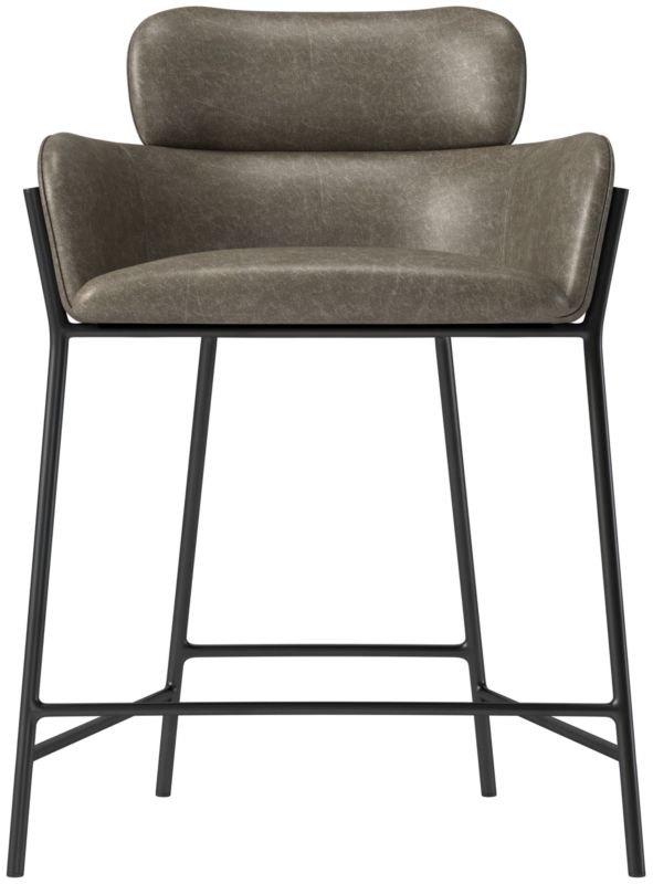 Upholstered counter stool by designer Caleb Zipperer is sophisticated in its simplicity. Cushioned seat and backrest is covered in rich top grain buffalo leather with a buttery-soft texture that develops a beautiful patina over time. Slim iron frame is finished in glossy black. CB2 exclusive.