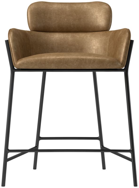 Upholstered counter stool by designer Caleb Zipperer is sophisticated in its simplicity. Cushioned seat and backrest is covered in rich top grain buffalo leather with a buttery-soft texture that develops a beautiful patina over time. Slim iron frame is finished in glossy black. CB2 exclusive.