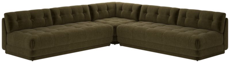A modern reinterpretation of the midcentury low-slung sofa, velvet sectional by VUUE combines sculptural form with exceptional craftsmanship. Assembled by hand in North Carolina from wood certified by the Forest Stewardship Council ® (FSC), each piece features blind tufting, a tight seat cushion and a semi-attached back cushion for balanced comfort and structure. Its generous proportions and plinth base lend a grounded, architectural feel, while the deep, lounge-ready design invites relaxed living. Designed for flexible configurations including conversation pits, this is a modern classic in the making. CB2 exclusive.