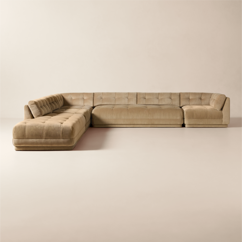View CartBelmond 5-Piece L-Shaped Light Brown Velvet Sectional Sofa with Left Arm Bumper
