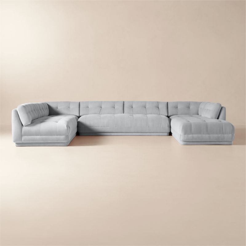 View CartBelmond 5-Piece U-Shaped Light Blue Velvet Sectional With Right-Arm Bumper