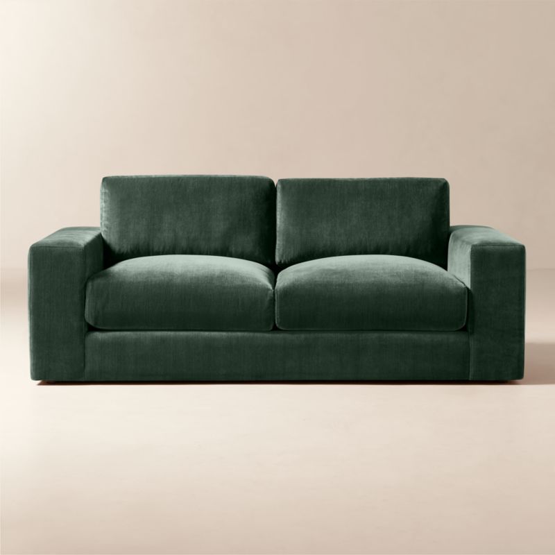 Berkeley strikes the perfect balance between plush seating and a clean, modern aesthetic. Hand-assembled by skilled artisans in North Carolina, the perfectly proportioned sofa is flanked by wide arms that leave extra room for resting. Crafted of hardwood certified sustainable by the Forest Stewardship Council® (FSC), the durable frame is covered in soft jade green performance velvet with neat stitching to keep the look clean yet casual. CB2 exclusive.