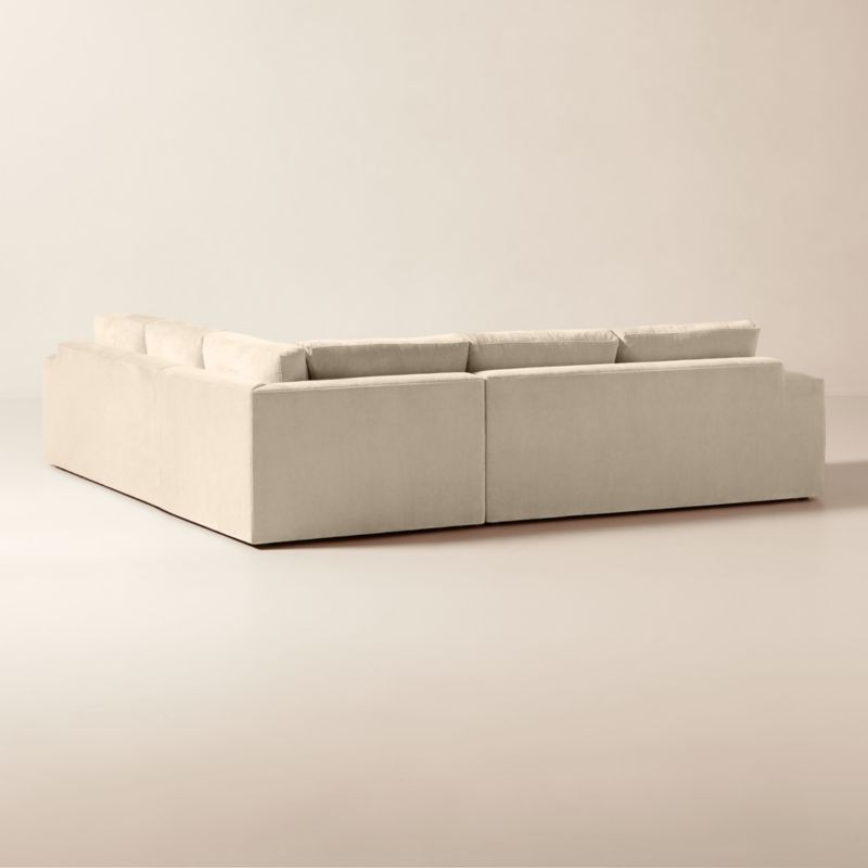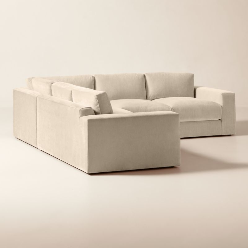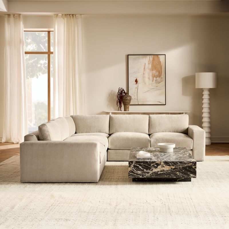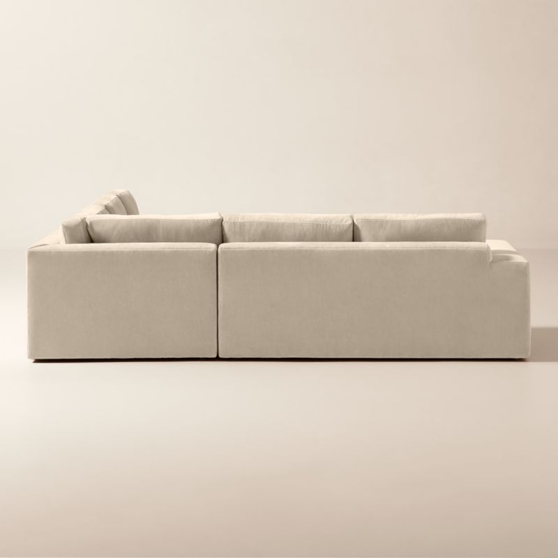 Berkeley strikes the perfect balance between plush seating and a clean, modern aesthetic. Hand-assembled by skilled artisans in North Carolina, the perfectly proportioned sectional is flanked by wide arms that leave extra room for resting. Crafted of hardwood certified sustainable by the Forest Stewardship Council ® (FSC), the durable frame is covered in soft taupe performance velvet with neat stitching to keep the look clean yet casual. CB2 exclusive.