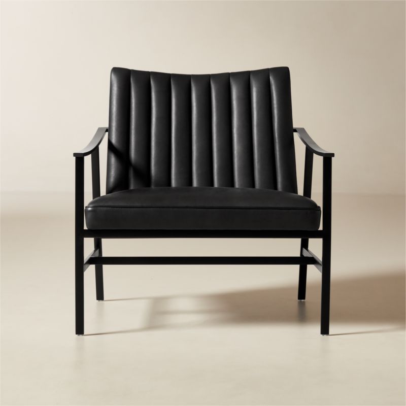 Introduced as office seating for the Blair Aluminum Furniture Company in the June 1961 issue of Interiors Magazine, black leather chair by Paul McCobb reflects the refined restraint of his most iconic designs. Set atop blackened metal legs, the generously cushioned seat and back are wrapped in supple Moore & Giles Italian leather with a tailored channel tufting. CB2 exclusive.