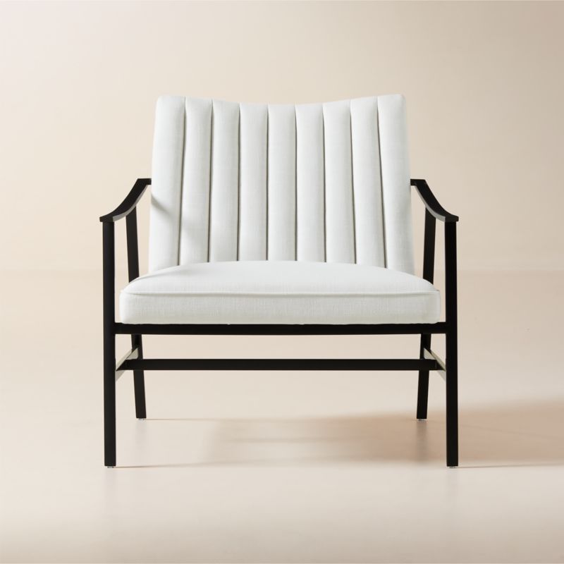 Introduced as office seating for the Blair Aluminum Furniture Company in the June 1961 issue of Interiors Magazine, white performance fabric chair by Paul McCobb reflects the refined restraint of his most iconic designs. Set atop blackened metal legs, the generously cushioned seat and back are wrapped in a textured, linen-like performance fabric with tailored channel tufting. CB2 exclusive.