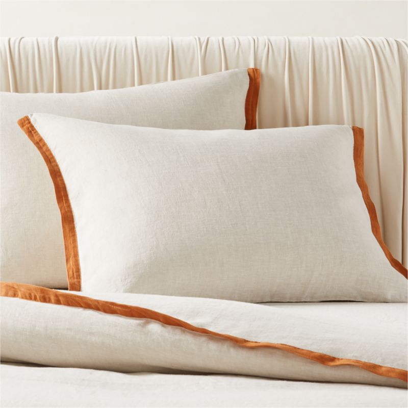 Made in Portugal from exceptionally durable EUROPEAN FLAX linen fibers, OEKO-TEX ®-certified linen is woven into timeless white shams that become softer with each wash. Copper border detail gives the shams a modern finish. Pair with matching duvet cover. CB2 exclusive.