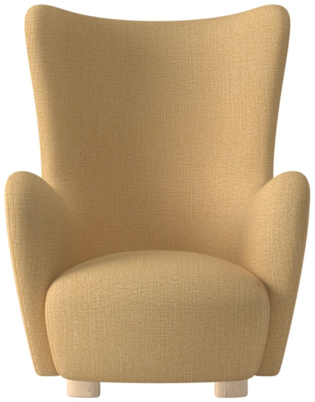 A modern take on a classic wing chair. Designer Ross Cassidy brings his signature flair to a popular silhouette by wrapping it entirely in luxe ivory boucle. Bleached oak feet are asymmetrical and wire-brushed for a special design detail, with matching asymmetrical ottoman sold separately. Framed out in FSC ®-certified wood. CB2 exclusive.
