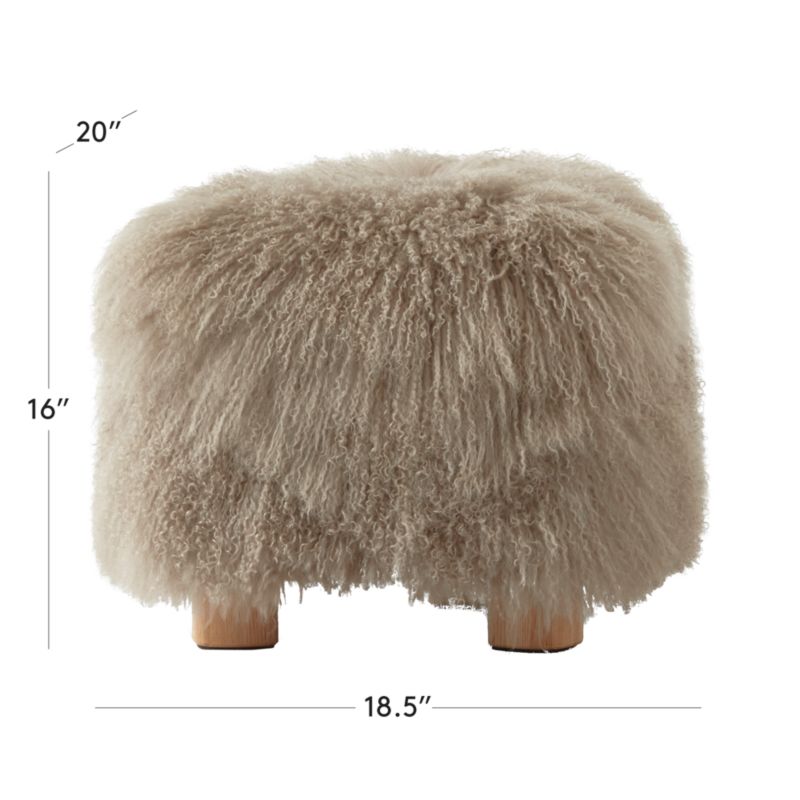 Bozzi Taupe Mongolian Sheepskin Ottoman16"Hheight18.5"Wwidth20"DdepthMeasurements are in inches.
