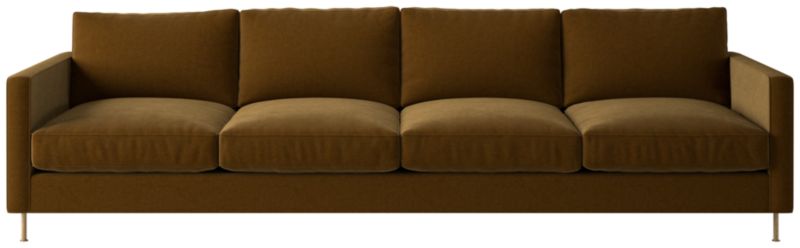 Ross Cassidy evokes the clean lines of early 20th-century French industrial design. The silhouette features a shelter back and plush cushions with a defining contrast welt trim. A modern classic, the sofa is covered in taupe velvet made by JB Martin, an award-winning South Carolina textile mill that has been family-run for six generations. CB2 exclusive.