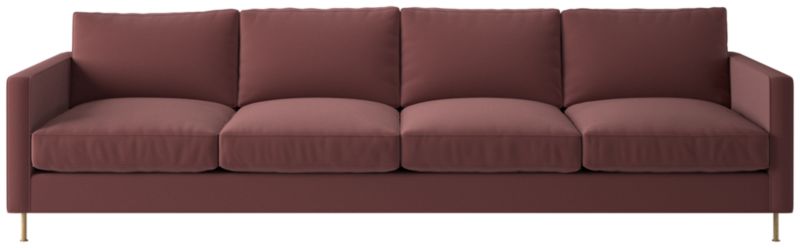 Assembled in North Carolina, velvet sofa by Los Angeles-based AD100 designer Ross Cassidy evokes the clean lines of early 20th-century French industrial design. The silhouette features a shelter back and plush cushions with a defining contrast welt trim. A modern classic, the sofa is covered in taupe velvet made by JB Martin, an award-winning South Carolina textile mill that has been family-run for six generations. CB2 exclusive.
