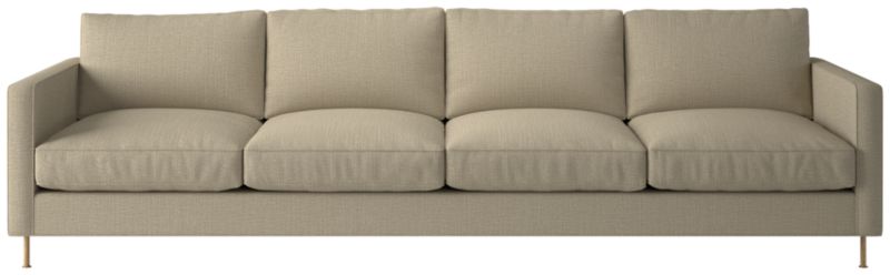 Ross Cassidy evokes the clean lines of early 20th-century French industrial design. The silhouette features a shelter back and plush cushions with a defining contrast welt trim. A modern classic, the sofa is covered in taupe velvet made by JB Martin, an award-winning South Carolina textile mill that has been family-run for six generations. CB2 exclusive.
