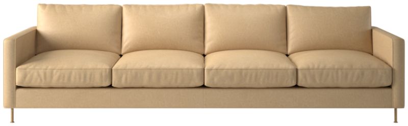 Assembled in North Carolina, leather sofa by Los Angeles-based AD100 designer Ross Cassidy evokes the clean lines of early 20th-century French industrial design. The silhouette features a shelter back and plush cushions with a welt trim. CB2 exclusive.