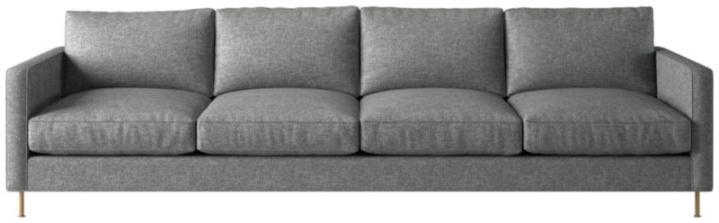 Ross Cassidy evokes the clean lines of early 20th-century French industrial design. The silhouette features a shelter back and plush cushions with a defining contrast welt trim. A modern classic, the sofa is covered in taupe velvet made by JB Martin, an award-winning South Carolina textile mill that has been family-run for six generations. CB2 exclusive.