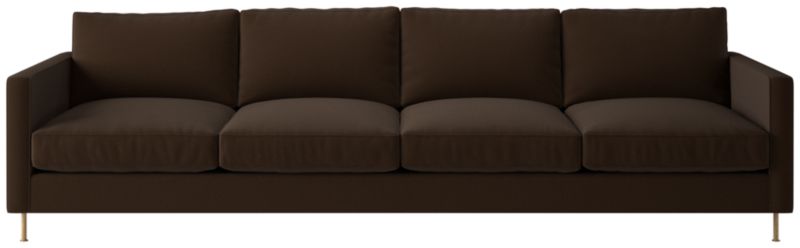 Ross Cassidy evokes the clean lines of early 20th-century French industrial design. The silhouette features a shelter back and plush cushions with a defining contrast welt trim. A modern classic, the sofa is covered in taupe velvet made by JB Martin, an award-winning South Carolina textile mill that has been family-run for six generations. CB2 exclusive.