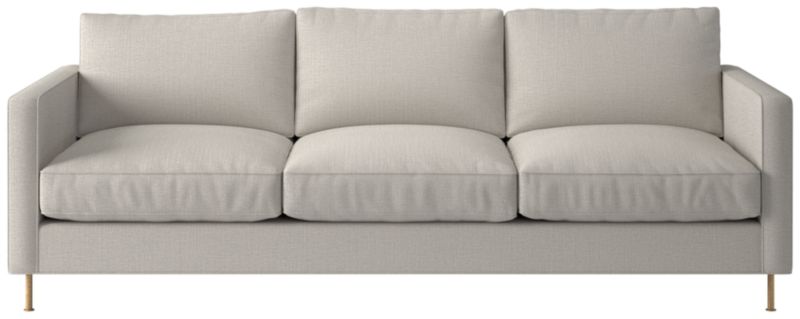 Assembled in North Carolina, velvet sofa by Los Angeles-based AD100 designer Ross Cassidy evokes the clean lines of early 20th-century French industrial design. The silhouette features a shelter back and plush cushions with a defining contrast welt trim. A modern classic, the sofa is covered in taupe velvet made by JB Martin, an award-winning South Carolina textile mill that has been family-run for six generations. CB2 exclusive.