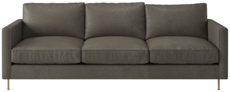 Assembled in North Carolina, leather sofa by Los Angeles-based AD100 designer Ross Cassidy evokes the clean lines of early 20th-century French industrial design. The silhouette features a shelter back and plush cushions with a welt trim. CB2 exclusive.
