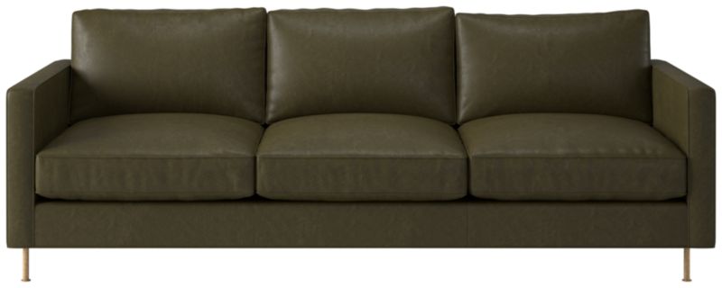 Assembled in North Carolina, leather sofa by Los Angeles-based AD100 designer Ross Cassidy evokes the clean lines of early 20th-century French industrial design. The silhouette features a shelter back and plush cushions with a welt trim. CB2 exclusive.