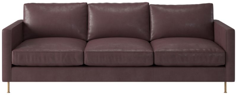 Assembled in North Carolina, leather sofa by Los Angeles-based AD100 designer Ross Cassidy evokes the clean lines of early 20th-century French industrial design. The silhouette features a shelter back and plush cushions with a welt trim. CB2 exclusive.