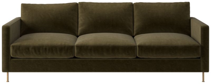 Ross Cassidy evokes the clean lines of early 20th-century French industrial design. The silhouette features a shelter back and plush cushions with a defining contrast welt trim. A modern classic, the sofa is covered in taupe velvet made by JB Martin, an award-winning South Carolina textile mill that has been family-run for six generations. CB2 exclusive.