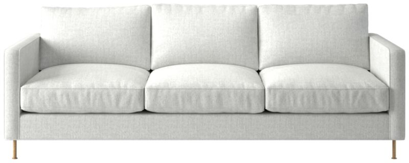 Ross Cassidy evokes the clean lines of early 20th-century French industrial design. The silhouette features a shelter back and plush cushions with a defining contrast welt trim. A modern classic, the sofa is covered in taupe velvet made by JB Martin, an award-winning South Carolina textile mill that has been family-run for six generations. CB2 exclusive.
