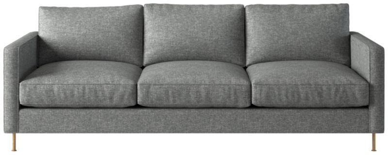 Assembled in North Carolina, velvet sofa by Los Angeles-based AD100 designer Ross Cassidy evokes the clean lines of early 20th-century French industrial design. The silhouette features a shelter back and plush cushions with a defining contrast welt trim. A modern classic, the sofa is covered in taupe velvet made by JB Martin, an award-winning South Carolina textile mill that has been family-run for six generations. CB2 exclusive.