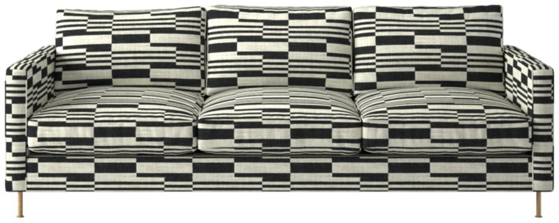 Ross Cassidy evokes the clean lines of early 20th-century French industrial design. The silhouette features a shelter back and plush cushions with a defining contrast welt trim. A modern classic, the sofa is covered in taupe velvet made by JB Martin, an award-winning South Carolina textile mill that has been family-run for six generations. CB2 exclusive.