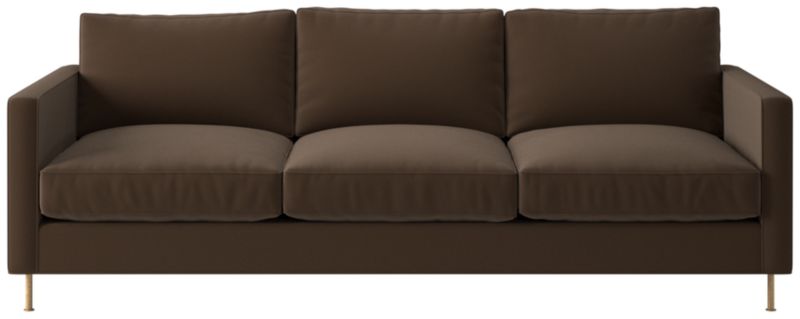 Ross Cassidy evokes the clean lines of early 20th-century French industrial design. The silhouette features a shelter back and plush cushions with a defining contrast welt trim. A modern classic, the sofa is covered in taupe velvet made by JB Martin, an award-winning South Carolina textile mill that has been family-run for six generations. CB2 exclusive.