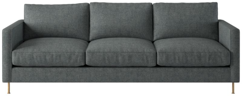 Ross Cassidy evokes the clean lines of early 20th-century French industrial design. The silhouette features a shelter back and plush cushions with a defining contrast welt trim. A modern classic, the sofa is covered in taupe velvet made by JB Martin, an award-winning South Carolina textile mill that has been family-run for six generations. CB2 exclusive.