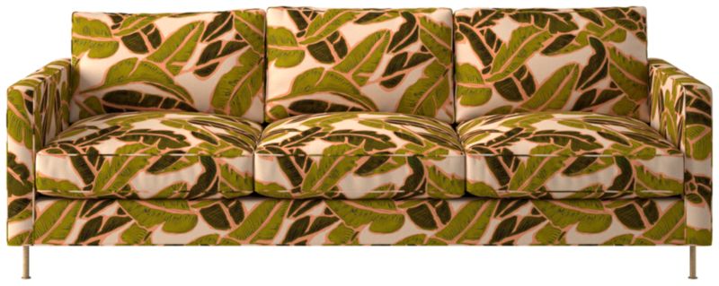 Ross Cassidy evokes the clean lines of early 20th-century French industrial design. The silhouette features a shelter back and plush cushions with a defining contrast welt trim. A modern classic, the sofa is covered in taupe velvet made by JB Martin, an award-winning South Carolina textile mill that has been family-run for six generations. CB2 exclusive.